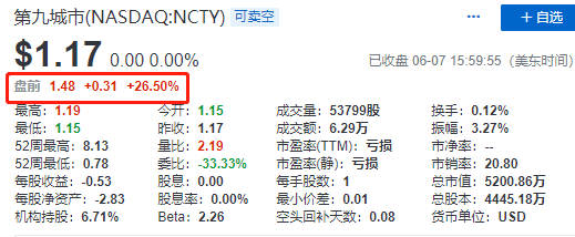 6月10日,第九城市美股盘前一度大涨35%,截至发稿,涨幅回落至26.50%。此前该公司发布公告称与FF合资公司落户呼和浩特。