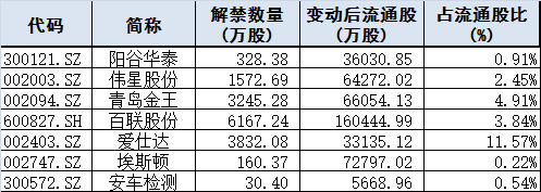 限售股解禁: