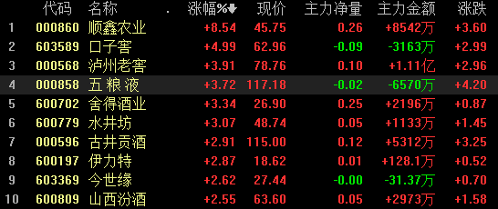 白酒概念股24日集体大涨,截至发稿,顺鑫农业涨逾8%,口子窖涨逾4%,泸州老窖、今世缘、五粮液、贵州茅台、舍得酒业等涨逾3%,山西汾酒、古井贡酒等涨逾2%,其中,五粮液突破117元,贵州茅台最高达999.69元,股价均创历史新高。
