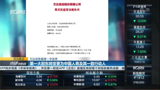 继2018年底通过国寿资产-凤凰专项产品入股万达信息后,中国人寿再度举牌并将成为其第一大股东。