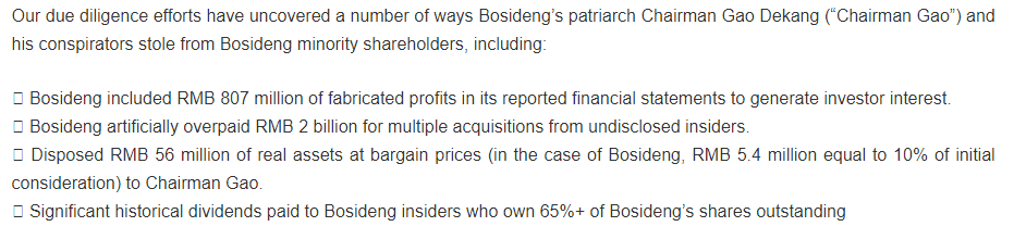 BONITAS指控,波司登在公开市场欺诈,夸大收入及盈利,不披露关联交易等。