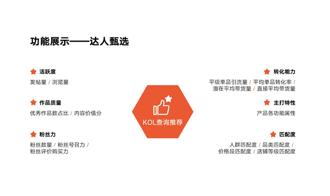 “红漏斗“基于阿里全域消费大数据及百万级网红达人数据库,能够帮你找淘内渠道,帮你匹配达人,从而提升销售转化、深化品牌认知,沉淀人群资产。