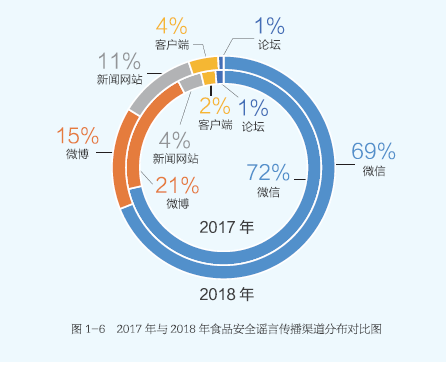 6月25日,中国健康传媒集团发布的《2018食品安全谣言治理报告》显示,食品安全谣言传播渠道最多的是微信,占比高达69%;其次是微博,占比15%。