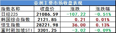 【亚洲主要市场收盘表现】