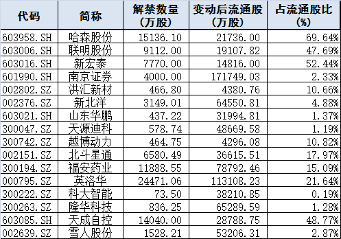 限售股解禁: