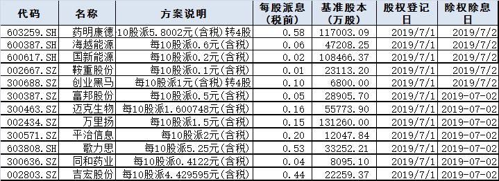 分红除权除息: