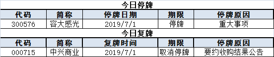 上市公司停复牌统计: