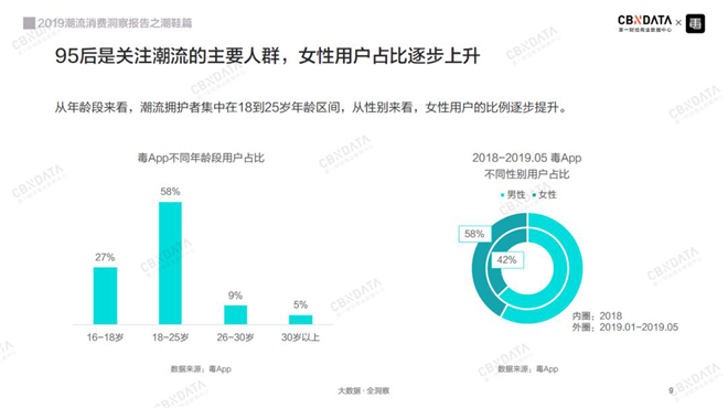 近日,第一财经商业数据中心(CBNData)联合毒App发布《2019潮流消费洞察报告之潮鞋篇》(下文简称CBNData《报告》),基于CBNData消费大数据以及2018年1月-2019年6月毒App平台数据,以毒App平台用户为研究对象,通过分析他们的潮流消费行为,还原中国当代青年的潮流文化现状,洞察中国潮流市场的未来。CBNData《报告》显示: