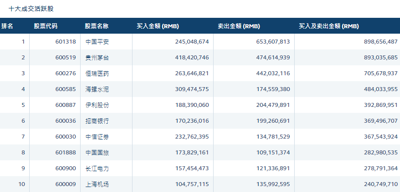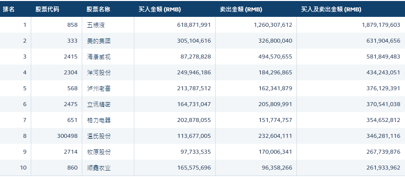 盘后数据显示,五粮液遭净卖出6.41亿元,中国平安遭净卖出4.09亿元,海康威视遭净卖出4.07亿元。海螺水泥获净买入1.35亿元。