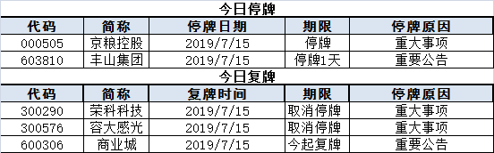 上市公司停复牌统计: