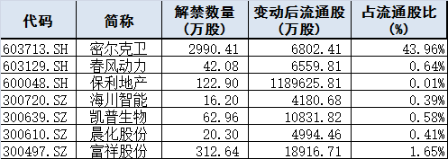 限售股解禁: