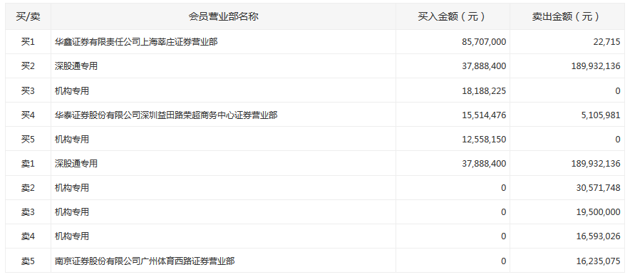 盘后数据显示,深股通卖出1.89亿元并买入3788万元,三家机构合计卖出6666万元。