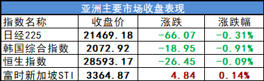 【亚洲主要市场收盘表现】
