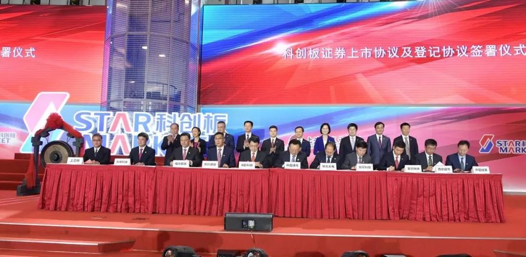 中国证监会副主席李超、上海证券交易所理事长黄红元分别致辞。科创板首批上市公司同上海证券交易所、中国证券登记结算有限责任公司签署上市协议和登记协议。