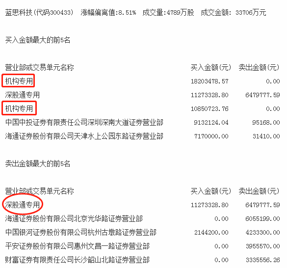 从详细数据看,机构今日买入最多的蓝思科技有2家机构买入,净买入金额2905万元。同时,深股通席位净买入约500万元。