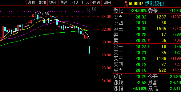 周二早盘,伊利股份开盘后大幅下挫,股价几近跌停。截至发稿,报28.22元,跌8.18%。