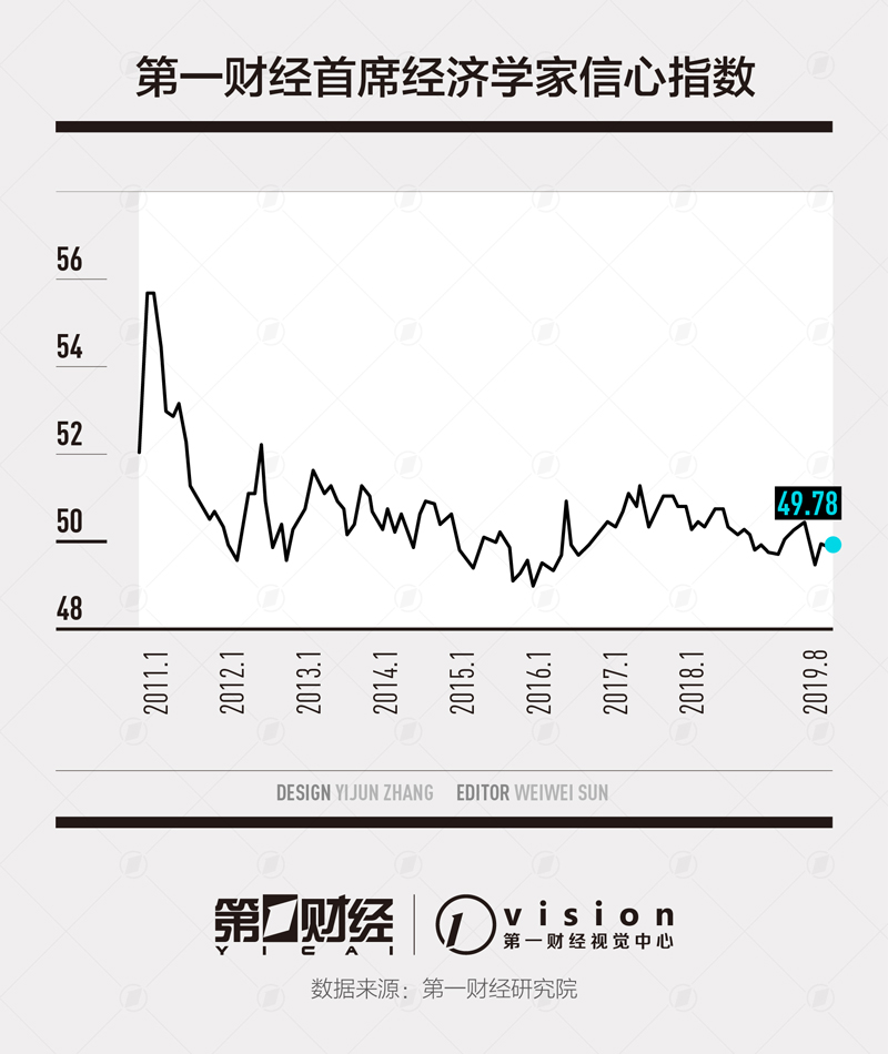 8月“第一财经首席经济学家信心指数”为49.78,连续3个月低于50临界点。