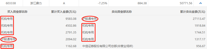 从详细数据看,机构今日净买入最多的浙江鼎力有4家机构和1家沪股通买入,3家机构和1家沪股通卖出,净买入金额为13059.45万元。