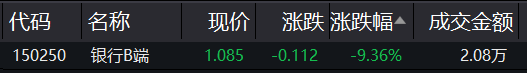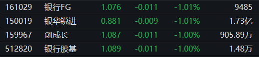 另外,银行主题基金受利差收窄冲击陷入调整,银行B端(150250.SZ)跌9.36%、银行FG(161029.SZ)跌1.01%、银行股基(512820.SH)跌1.00%。
