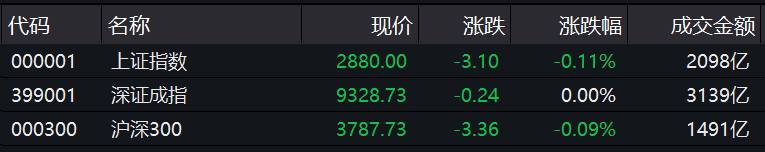 截至收盘,沪指下跌0.11%,报2880.00点;深成指上涨0.00%,报9328.73点;创业板指下跌0.69%,报1611.59点,两市全天成交合计5237.13亿元。基金方面,沪基指跌0.15%,成交金额约为275亿元。