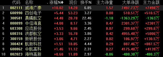 8月30日,A股三大股指冲高回落,航空板块午后表现活跃,截至发稿,威海广泰涨停,四创电子涨超5%,晨曦航空、中信海直涨超4%,洪都航空、航新科技、中航高科等跟涨。
