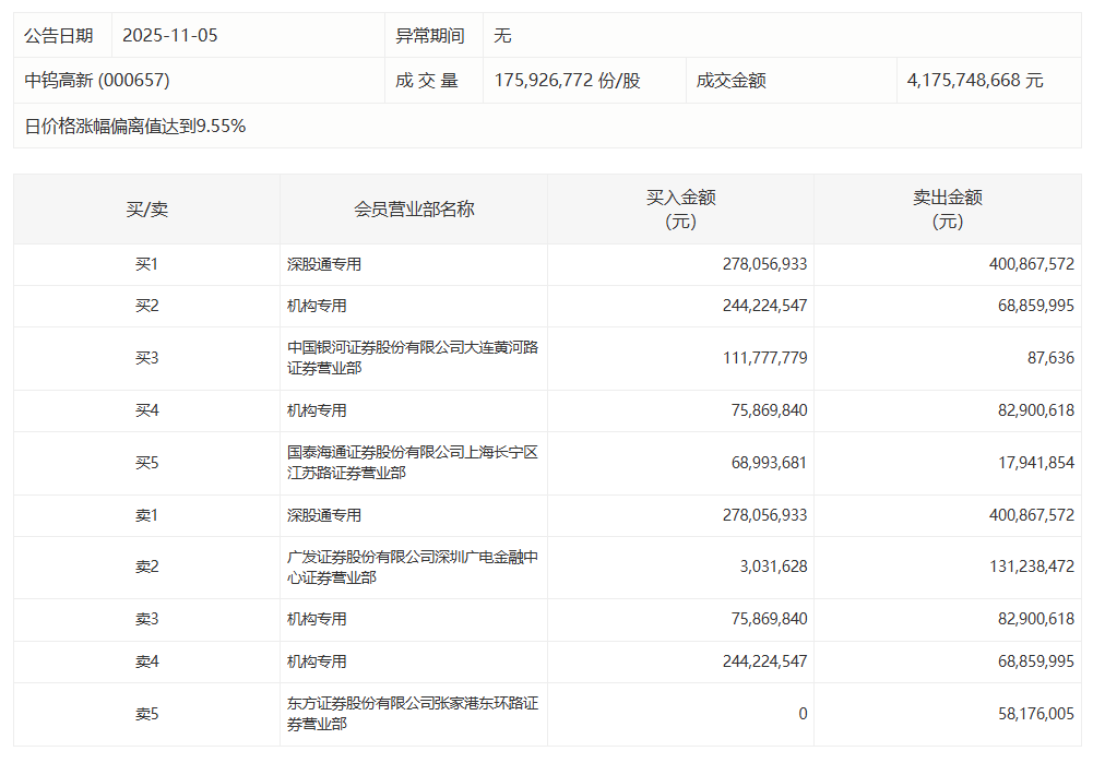 中钨高新今日涨停,陈小群席位净买入1.12亿元