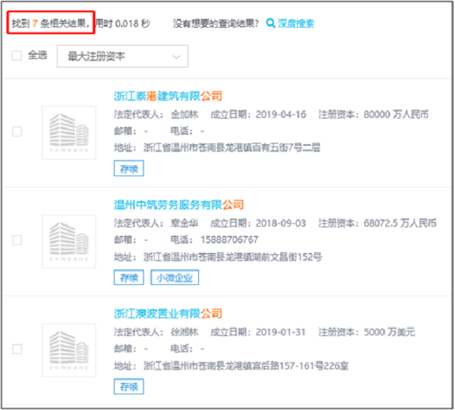 其中,注册资金超过一亿元的企业共有49家,值得注意的是,在这49家当中,有多达7家注册资金超过一亿元的企业是成立于近一年内,并且多为建筑行业企业。