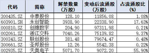 多家公司发布减持公告。其中,日盈电子股东拟减持不超2.56%股份;金运激光实控人拟减持不超6%股份;阿里创投拟减持光线传媒不超2%股份。