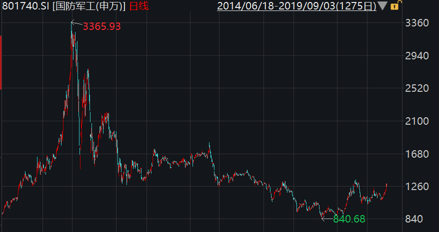 下面贴张军工指数走势图,给大家感受一下这几年跌得有多惨。