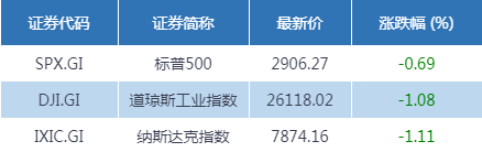 美股9月开门黑,全球贸易形势及经济数据不佳打压投资者情绪,三大股指集体收跌,道指跌超280点,纳指跌1.11%,标普500指数跌0.69%;金价涨超1.7%,再创六年新高;美油跌逾2%。