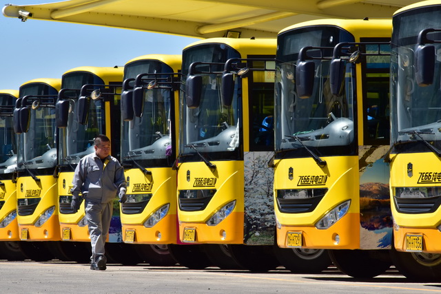新能源汽车代表未来汽车产业发展方向。图为山东曲阜公交车队。摄影/章轲