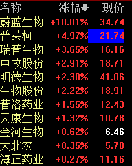 9月11日,A股三大股指高开,动物疫苗涨幅居前。截至发稿,蔚蓝生物涨停、普莱柯、瑞普生物、中牧股份等跟涨。