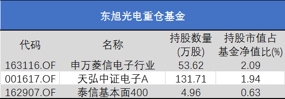 据Wind统计,就基金中报重仓情况来看,并无基金重仓茂硕电源和东方中科。至于东旭光电,也只有3只指数基金小幅重仓。