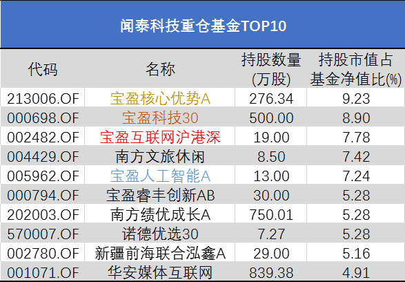 小编结合Wind数据统计了下截至二季度末,哪些基金重仓这些股票的仓位较高,以下为这几只股票的重仓基金TOP10。