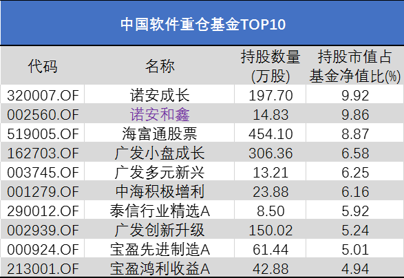 具体来看,财通价值动量(720001.OF)、财通多策略福鑫(501046.OF)、财通成长优选(001480.OF)、财通集成电路产业A(006502.OF)均重仓沪电股份;广发小盘成长(162703.OF)、广发多元新兴(003745.OF)和广发创新升级(002939.OF)均重仓中国软件;大成正向回报(001365.OF)、大成国家安全(002567.OF)和大成健康产业(090020.OF)均重仓了韦尔股份。