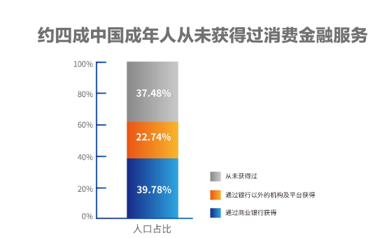 尽管如此,目前中国仍有近40%成年人从未获得过消费金融服务,反观发达国家这一比例仅有不足20%,中国消费金融获得率远低于发达国家。