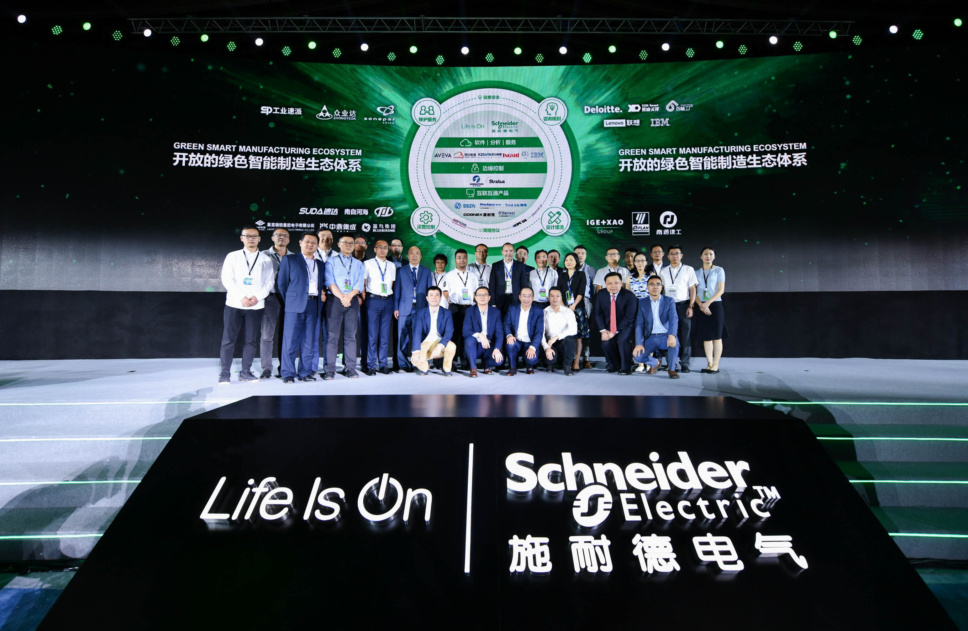 庞邢健表示,IT和OT之间的融合需要通过朋友圈来完成,此次绿色智能制造创新峰会上,与施耐德电气共同组建生态体系的还有26家合作伙伴,以求更好地帮助企业打造数字化蓝图。其中包括德勤、赛迪智能制造、西云数据、莱芜钢铁、中鼎集成等企业,未来陆续还会有更多合作伙伴加入。