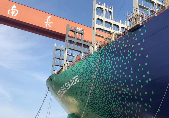 达飞集团是最早进入中国市场的一批海运公司,早在1992年就在上海建立了办事处。达飞集团副总裁勒克莱克告诉第一财经记者:“从设计到船体基本完成建设一共耗时30个月,这一速度是全球任何地方都无法达到的。”