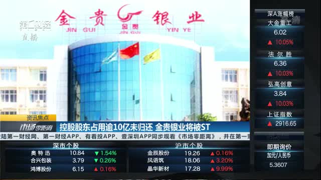 作为A股唯一的一家以白银为主营业务的上市公司,“中国白银第一股”金贵银业先是上半年的业绩亏损,后又因债务危机和实控人占用公司资金等问题而被推到了风口浪尖。金贵银业昨晚披露公告,公司因存在被控股股东曹永贵非经营性占用资金,且一个月以内无法偿还所占用资金,公司股票触及其他风险警示情形。公司股票今天停牌一天,明天起复牌并将被实施其他风险警示,股票简称变更为“ST金贵”。对此,业内分析称,金贵银业控股股东短期内偿还占用资金的可能性不大。