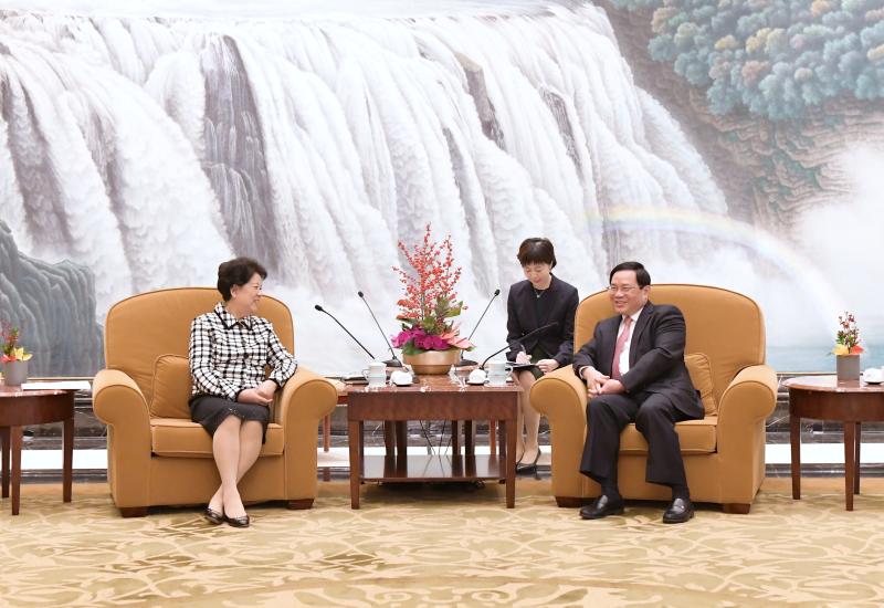 市领导陈群,复旦大学党委书记焦扬、校长许宁生参加会见。