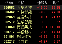 周二早盘,ETC板块快速走强,截至发稿,万集科技封涨停,华铭智能、金溢科技涨超4%,达华智能、博通集成等纷纷跟涨。