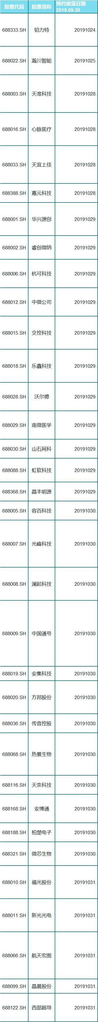 科创板三季报业绩预约时间表如下: