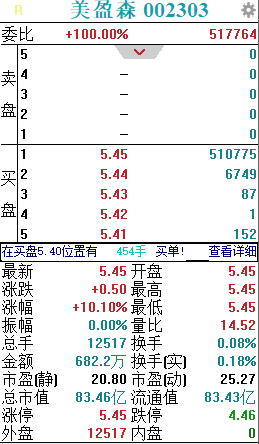 10月25日,美盈森开盘一字涨停,截至发稿,报5.45元/股。
