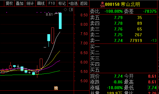 周二午后,上周的华为概念明星股常山北明封死跌停。截至发稿,报7.74元,跌停板封单接近8万手,成交14.68亿元,换手率11.13%。