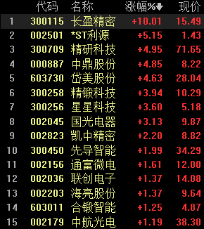 二级市场上,特斯拉概念股长盈精密今日涨停,*ST利源涨逾5%,精研科技、中鼎股份等涨逾4%,