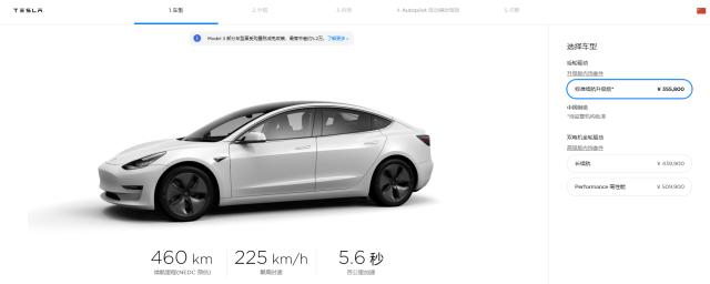 特斯拉中国官网显示,特斯拉Model 3标准续航升级版(中国制造)车型已经开放预订,起售价为35.58万元人民币,长续航版售价49.99万元人民币,高性能版售价50.99万元。官网显示,此款 Model 3 车型续航里程为460公里,最高时速为225公里/小时,百公里加速为5.6秒。官网介绍,此款标准续航升级版Model 3预计交付日期为2020年一季度。