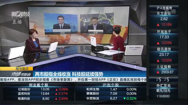 截至沪深股市全天收盘,上证综指收报2909.87点,上涨4.63 点,涨幅0.16%,成交额1515.76亿元;深证成指收报9746.56点,上涨58.71点,涨幅0.61%,成交额2362.26亿元;创业板指收报1692.58点,上涨10.79点,涨幅0.64%,成交额787.10 亿元。北向资金合计净流入12.11亿元,其中沪股通净流出1.01亿元,深股通净流入13.12亿元。