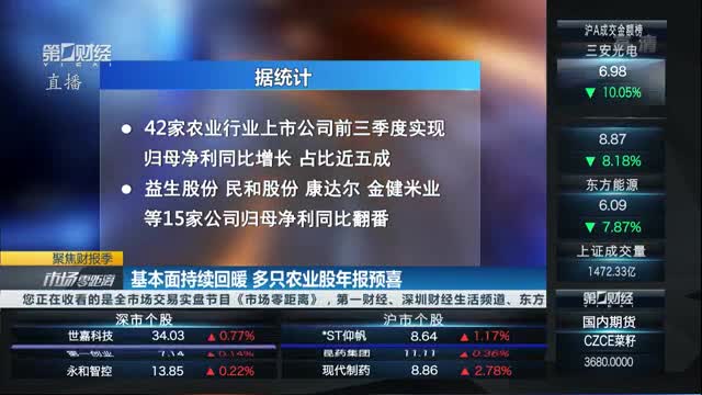 根据数据统计发现,在86家农业行业上市公司中,今年前三季度实现归属母公司股东的净利润同比增长的公司共有42家,占比近五成。