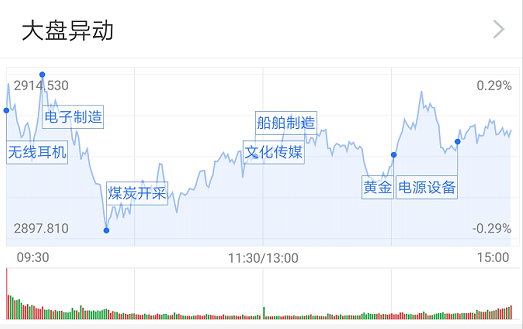 开盘TWS耳机、智能音箱等概念回暖,消费电子板块强势领涨。而近几日风头正劲的钢铁、煤炭板块全线回调,三大指数冲高后一度回落翻绿。临近午盘,南北船合并概念升温,军工板块拉升,同时医药、食品饮料表现强势,指数走强。午后黄金股异动拉升,同时动力电池概念、猪产业概念发力,汽车、农林牧渔板块双双上扬,三大指数最终收红。