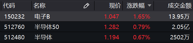 附相关场外基金:国联安中证全指半导体ETF联接C(007301.OF)、国联安中证全指半导体ETF联接A(007300.OF)、申万菱信电子(163116.OF)。收评君要提醒的是,场内基金涨跌幅是实时的,而关联的场外基金净值会延迟1天。